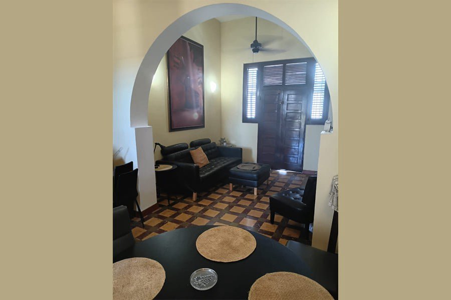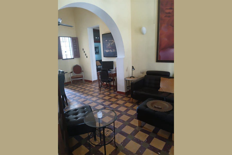 Furnished apartment close to Plaza España, all the historic flair of the busy streets, old churches and other tourist attractions of the oldest permanent European settlement of the New World. Close to nightlife, public transportation, family-friendly activities and restaurants. This modern and stylish apartment on the third floor (elevator available). Two bedrooms with a king- and a queen-size bed, air-conditioned plus additional ceiling fan and closet, Two bathrooms, one is an "in-suite"-bathroom, all with hot water shower and window for good air circulation, 32" TV with local and international channels, living/dining area with ceiling fan, TV, couch and balcony with view to street and Alcázar de Colón, Safety box, Elevator, 24h Electricity (Generator), Everything is walking distance.